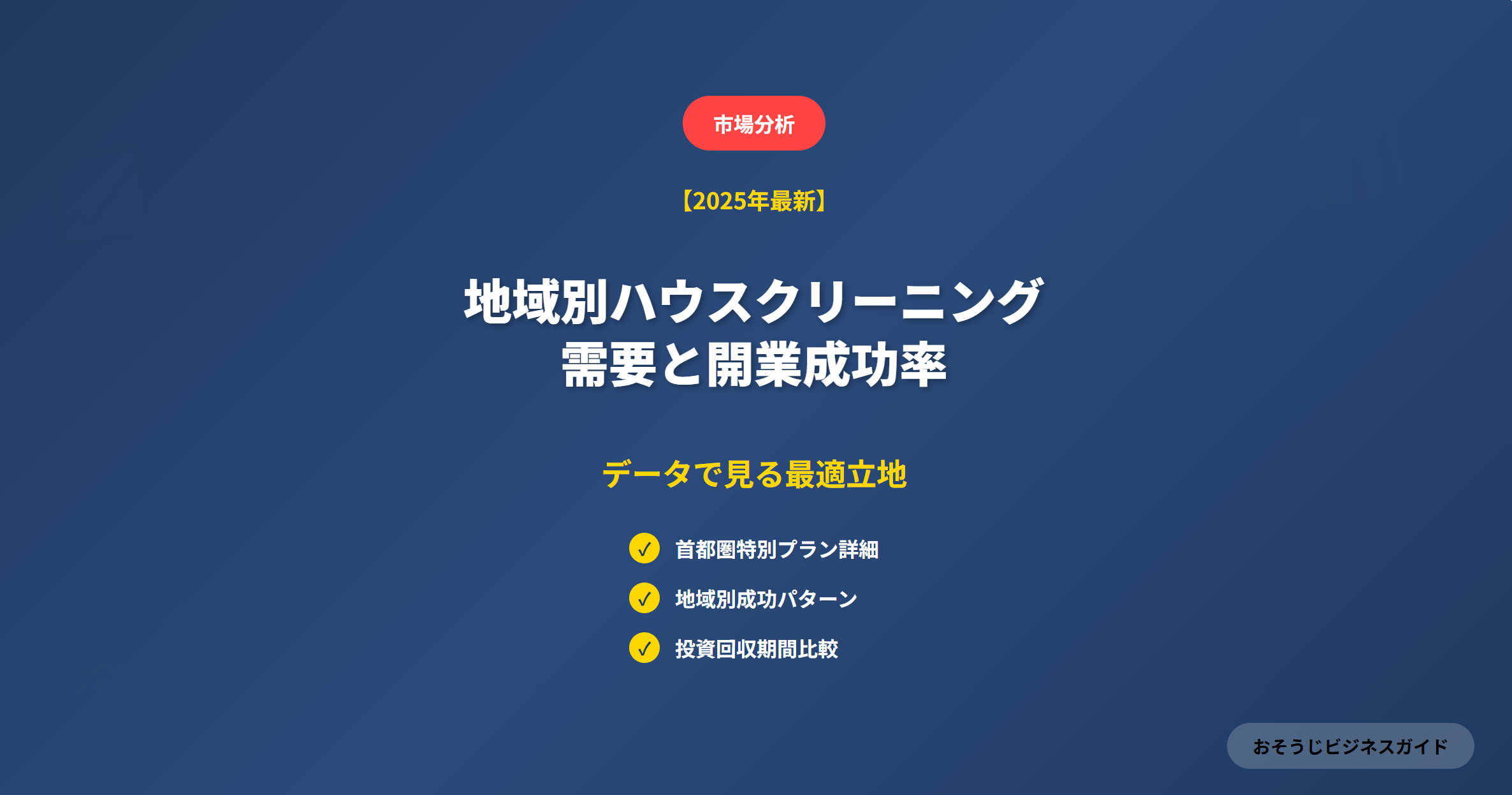 将来性・市場分析 【市場分析2025】地域別ハウスクリーニング需要と開業成功率|データで見る最適立地 2025年ハウスクリーニング市場の地域別データ分析。首都圏特別プラン(10万円開業)、関西圏、地方都市それぞれの成功戦略と最適立地選択法を業界プロが詳細解説。投資回収期間・競合状況・需要予測も完全網羅。 2025.08.19 将来性・市場分析
